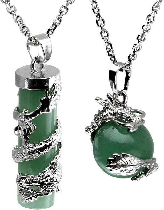 6Pcs Dragon Wrapped Healing Crystal Necklaces Set Natural round Crystal Ball Cylinder Stone Gemstone Chakra Pendant Necklace Reiki Quartz Jewelry for Wealth Protection